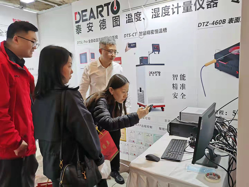 泰安德圖會議展示現(xiàn)場此次盛會,泰安德圖展示多款產(chǎn)品的性能特點(diǎn):DTSL Pro 全自動溫濕度計檢定系統(tǒng),全自動完成整個檢定行程,無需人工值守、支持自動進(jìn)行多點(diǎn)溫度、濕度控制,自動進(jìn)行溫濕度計定位及拍照識別、自動識別數(shù)顯式、指針式等不同類型溫濕度表、自動計算檢定結(jié)果并判斷檢定結(jié)論,實(shí)現(xiàn)設(shè)備的智能控制;DTS-CT300智能恒溫油槽主動排煙裝置,營造健康無煙實(shí)驗室環(huán)境;DTS-B系列超便攜智能恒溫槽寬量程(-40~180℃)檢測;DTZ-460B表面溫度計校準(zhǔn)系統(tǒng)寬溫度范圍(50~600℃)測量;DTZ-300BW 無線智能溫濕度巡檢儀24通道獨(dú)立配置、獨(dú)立同步采集。中國計量科學(xué)研究院段宇寧老師及在場專家,都對產(chǎn)品表現(xiàn)出濃厚興趣,并對產(chǎn)品的智能化和實(shí)用性給予了高度評價與關(guān)注。