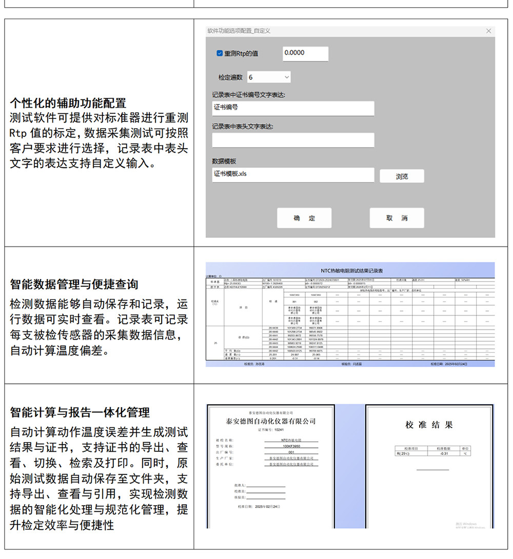 DTZ-NTC型 熱敏電阻自動檢測系統(tǒng)以 創(chuàng) 新 科技重塑熱敏電阻測試體驗,融合多通道低電勢掃描器、數(shù)字萬用表、計算機專業(yè)軟件及恒溫油(水)槽,打造全流程無人化檢測平臺。通過智能算法優(yōu)化,系統(tǒng)可適配各類熱敏電阻參數(shù),覆蓋廣域工作場景需求,實現(xiàn)從數(shù)據采集到質量分析的全周期自動化管理。內置工業(yè)級數(shù)據分析模塊,支持標準化報告生成與遠程監(jiān)控功能,以高可靠性與靈活擴展性,為傳感器校準、批量驗證及質量管控提供解決方案,助力智能制造時代的產品準確度升級。