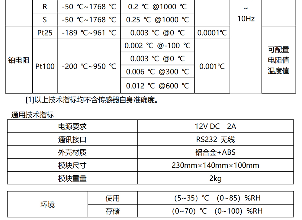 1、支持標準鉑電阻、工業鉑電阻、熱電偶等多種溫度傳感器。