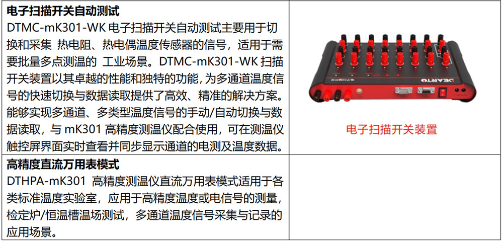 mK 高精度測溫儀可測量熱電阻、熱電偶、熱敏電阻、溫度變送器、濕度傳感器、直流電流和直流電阻以及直流電壓信號。支持ITS-90溫標和IEC60751標準,內(nèi)置德圖熱工計算器,支持傳感器參數(shù)管理和智能傳感器管理功能,在電力、石化、計量、冶金、生物、制藥、科研工作中有著廣泛用途,是溫度計量校準領域理想選擇。